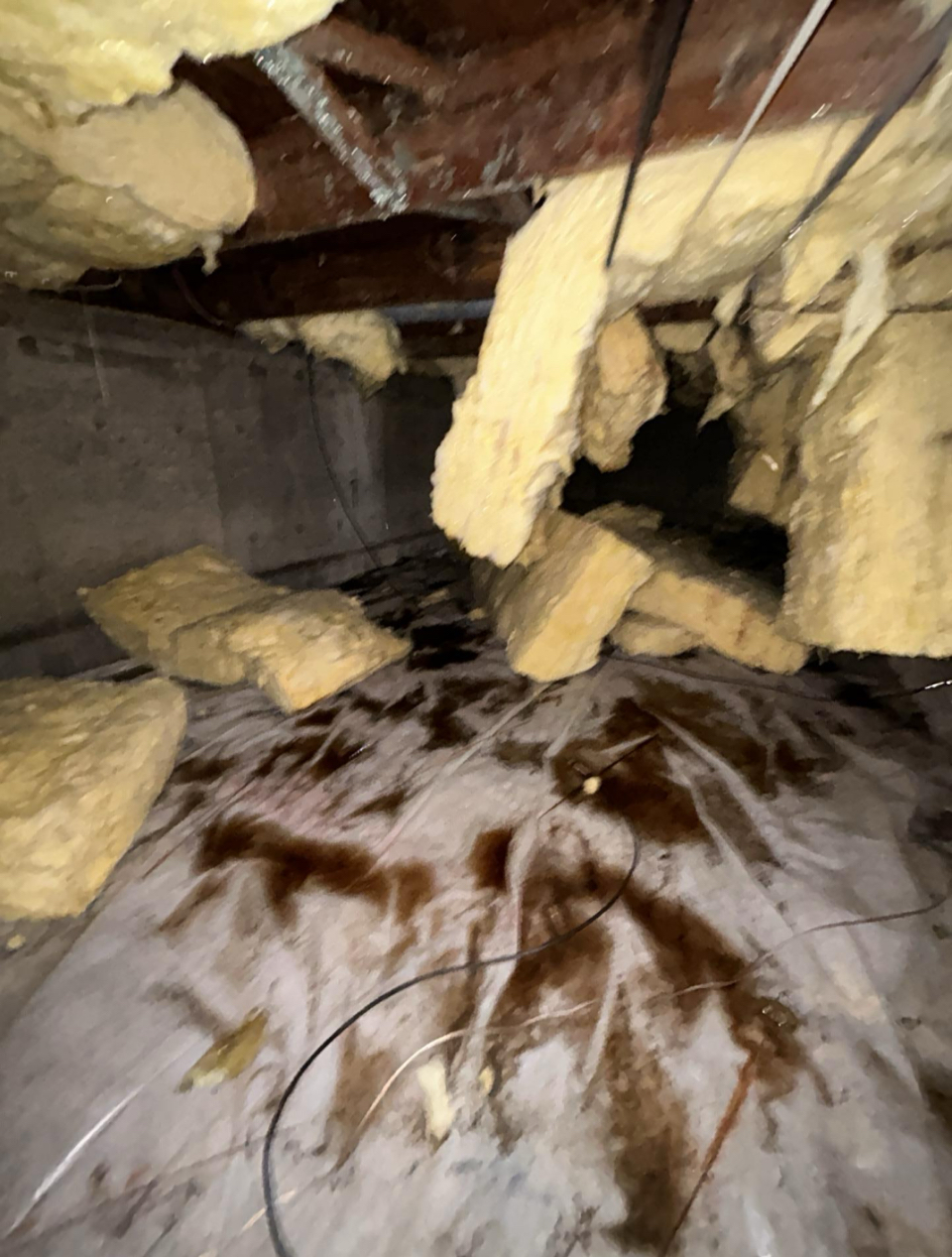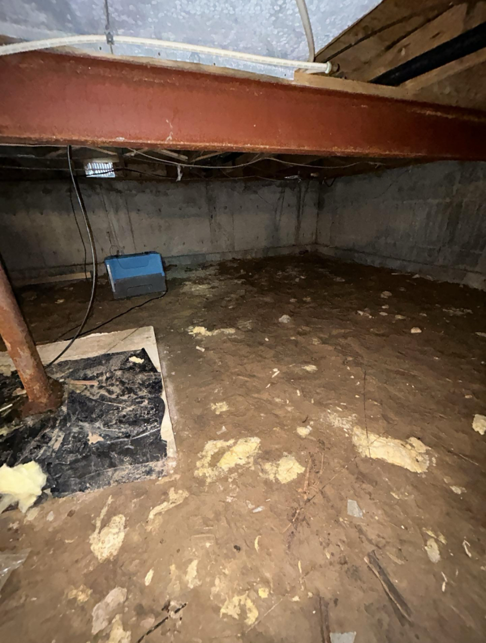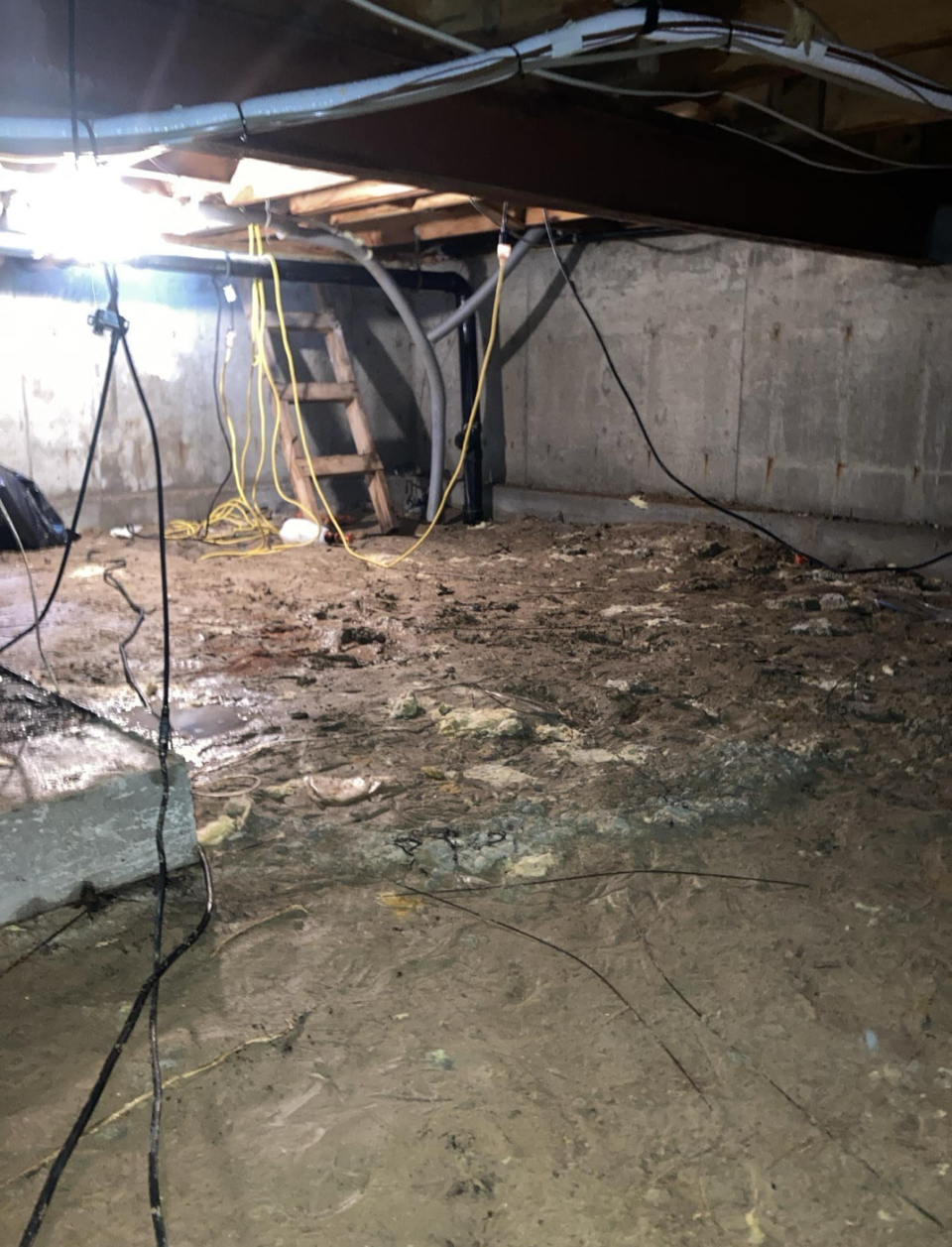 The client discovered significant water intrusion in the crawlspace after the water heater malfunctioned. Because the home’s main level empties into the crawlspace ceiling below, standing water began affecting insulation, vapor barrier, and structural components. Additionally, given the homeowner’s immunocompromised state, prompt action and environmental safety were especially critical.
